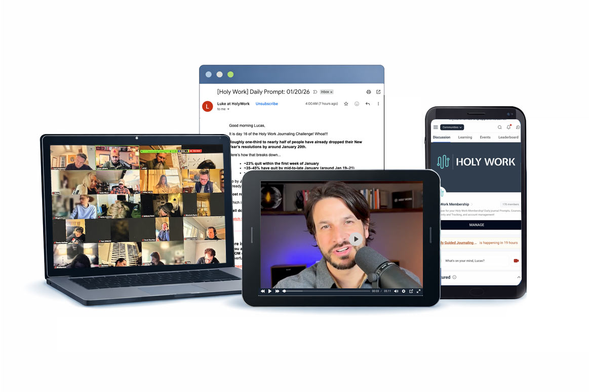 That concern makes sense… most people who join Holy Work are already overwhelmed. This isn’t a time-heavy program or something that asks you to carve out an hour a day. The core practice takes about 30 minutes a day. Some days you’ll do more, some days less. The goal isn’t perfection or consistency for its own sake… it’s creating a small, repeatable space where your mind can slow down, your emotions can surface, and you can hear God more clearly. Most members find that this practice actually gives them time back by reducing mental spinning and decision fatigue.